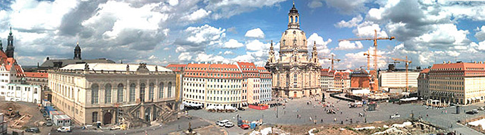 Dresden's Neumarkt, the well known face of the east German metropolis, is currently being reconstructed. Vis-à-vis the restored Frauenkirche a new urban design following historical archetypes is under construction. Since July 2005, cityscope is documenting this development with a 180° panoramic vista. more. |